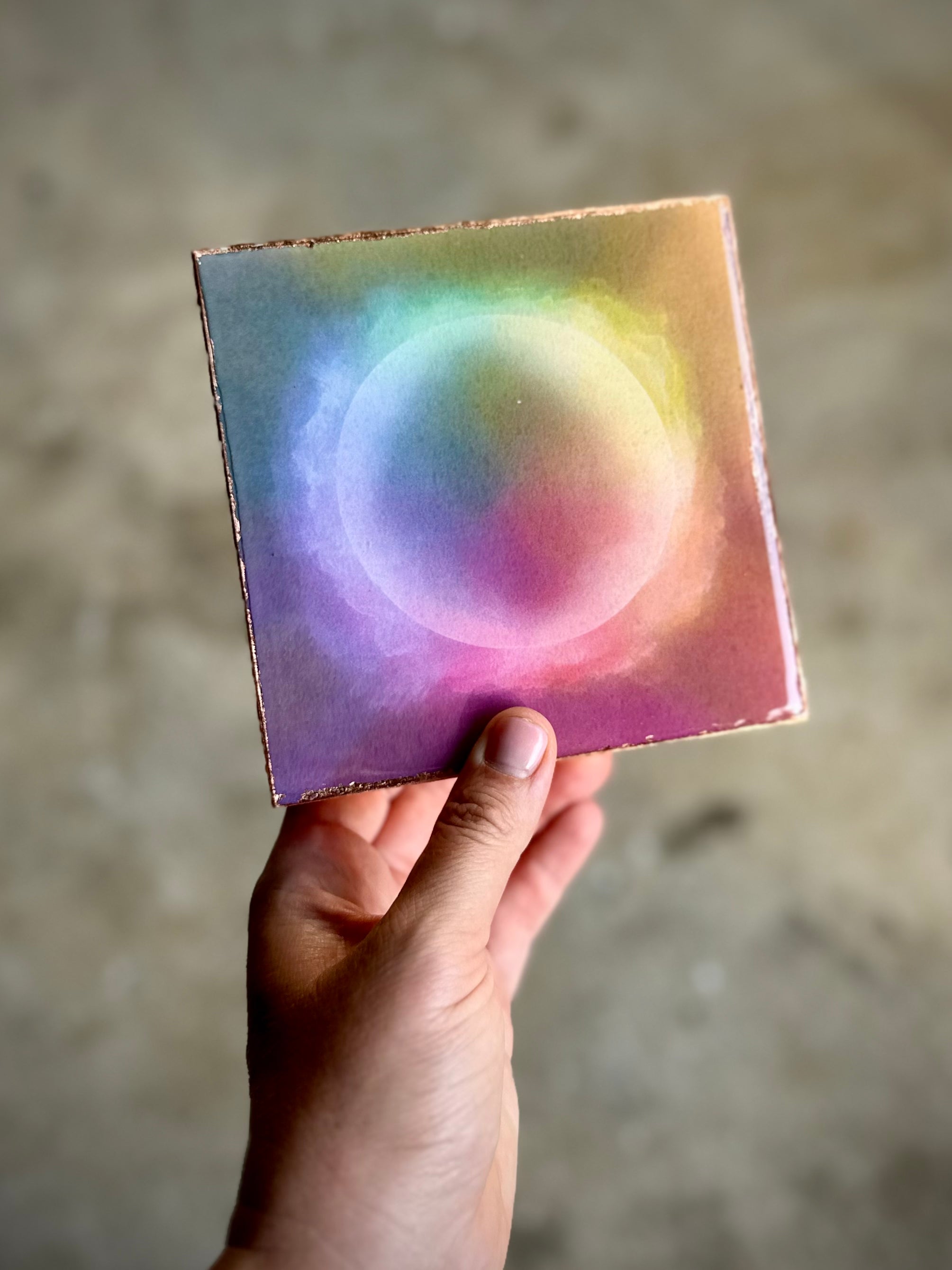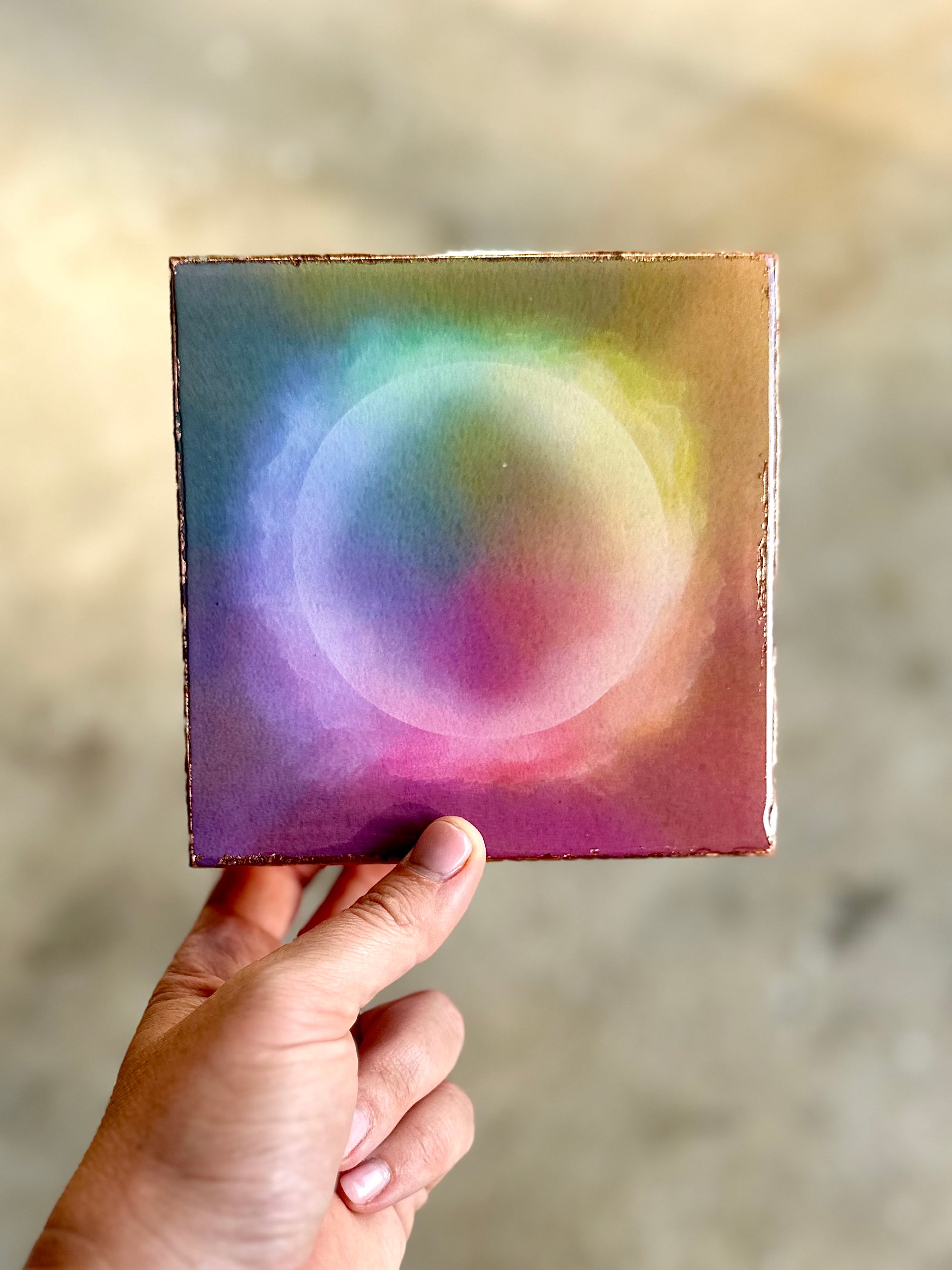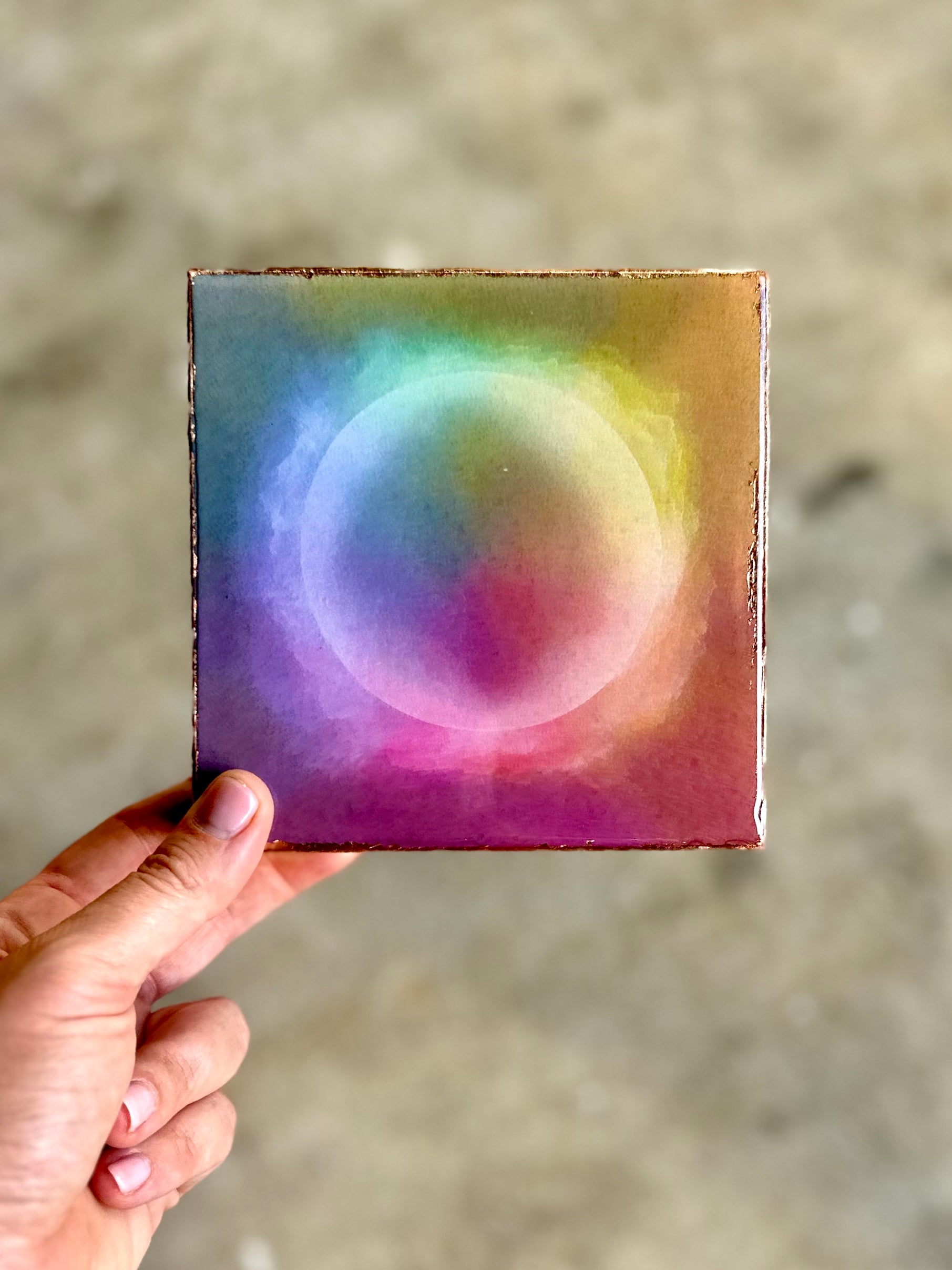 Each gicleè is mounted intentionally, all sides are hand anointed with copper leaf, resin clear coat seal.