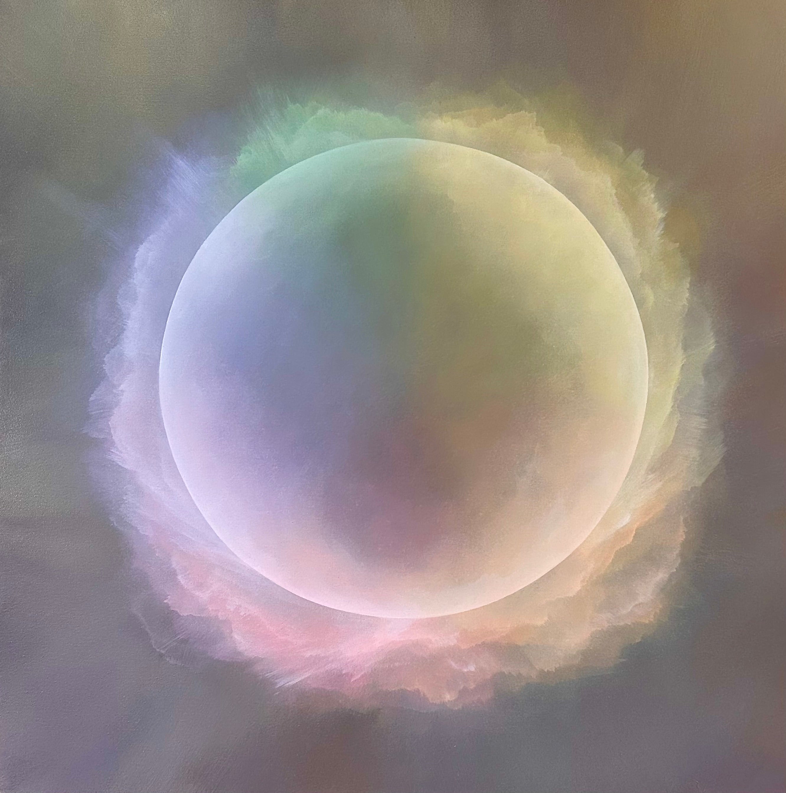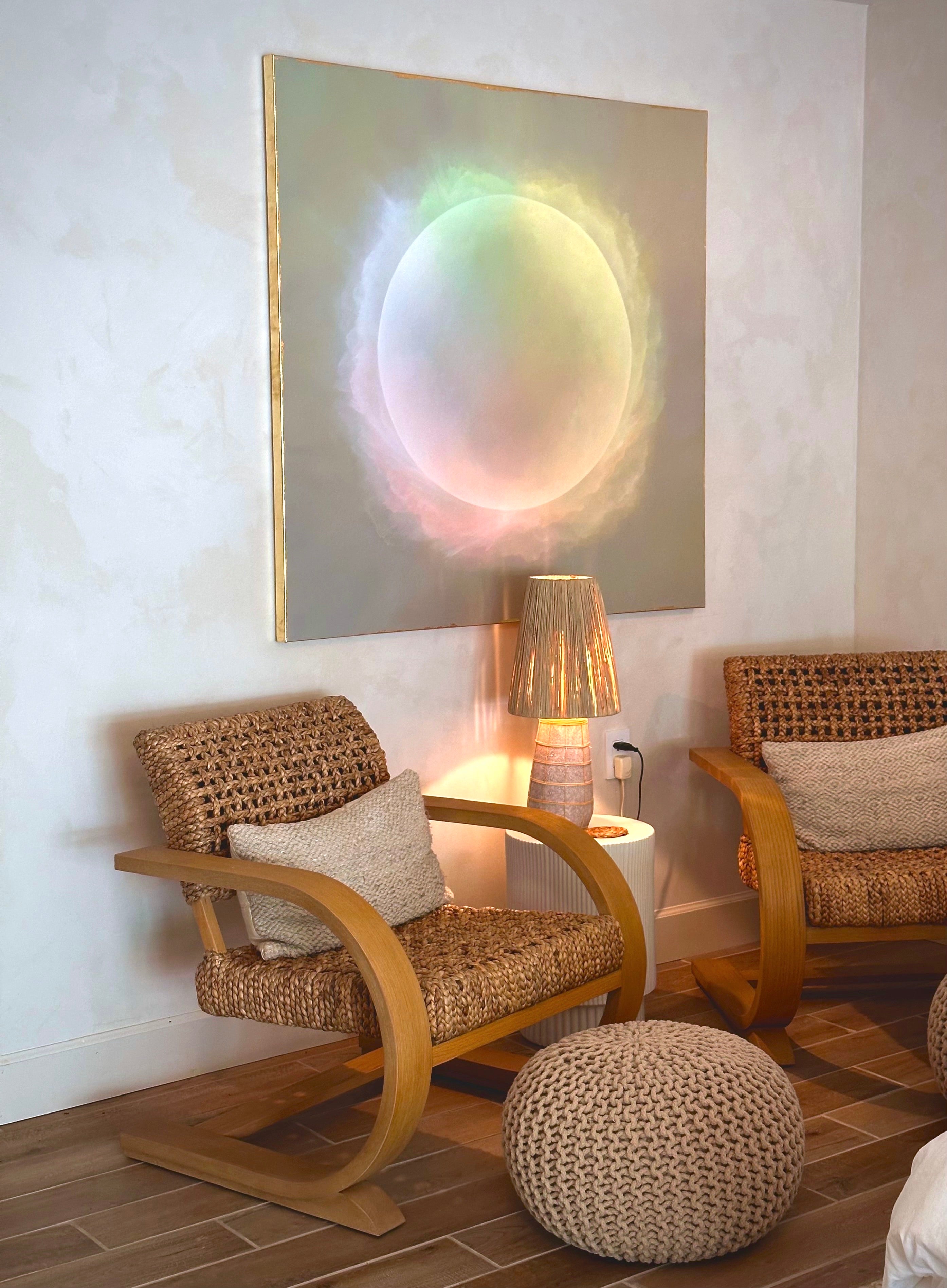4ft x 4ft ORIGINAL acrylic and oil on canvas, cocooned in copper leaf. Gallery depth.